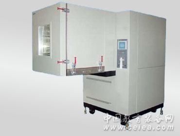 2.溫度范圍 -20℃~150℃ -40℃~150℃ -70℃~150℃ 1. 制冷工作原理 制冷工作原理:制冷循環采用逆卡若循環,該循環出兩個等溫過程和兩個絕熱過程組成,其過程如下:制冷劑經壓縮機絕熱壓縮到較高的壓力,消耗了的功使排氣溫度升高,之后制冷劑經冷凝器等溫地和四周介質進行熱交換將熱量傳給四周介質。后制冷劑經截流閥絕熱膨脹做功,這時制冷劑溫度降低。最后制冷劑通過蒸發器等溫地從溫度較高的物體吸熱,使被冷卻物體溫度降低。此循環周而復始從而達到降溫之目的。本試驗箱之制冷系統采用1套法國產泰康全封閉壓縮機所組成的二元復疊氟利昂制冷系統。制冷系統的設計應用能量調節技術,既能保證制冷機組正常運行,又能對制冷系統的能耗及制冷量進行有效的調節,使制冷系統保持在最佳的運行狀態。采用平衡調溫調濕法(BTHC),既在制冷系統在連續工作的情況下,控制系統根據設定之溫度點通過PID自動運算輸出的結果去控制加熱器的輸出量,最終達到一種動態平衡. 2.高低溫振動試驗箱設備結構 (1) 箱體采用數控設備制作、工藝先進、線條流暢,美觀大方 (2)工作室一端的風道夾層內,分布加熱器、制冷蒸發器、除濕蒸發器、風葉等裝置;試驗箱左側設有Ф50電纜孔,試驗箱為單開門(嵌入式門拉手),采用雙層耐老化硅橡膠密封。 (3) 設有防凝露帶導電膜的中空玻璃視窗及耐高、低溫的照明裝置,能清晰觀察到內部試驗物品 (4)試驗箱與振動臺之間配合設計合理,有效可靠. 3.設備材質. (1) 內箱材質為1.2mm厚304SUS高級不銹鋼拉絲板 (2) 外箱材質為1.5mm厚優質冷軋鋼板靜電噴涂 (3) 制冷系統采用百年“泰康”全封閉制冷壓縮機組,每臺機組均經過歐洲“泰康”電腦聯網逐項監測并有防偽編碼,可通過電腦上網查尋制冷壓縮機:為保證試驗箱對降溫速率和可達最低溫度的要求,該試驗箱采用單級制冷系統,制冷系統的設計有能量調節技術,一種行之有效的處理方式既能保證在制冷機組正常運行的情況下又能對制冷系統的能耗及制冷量進行有效的調節. (4)保溫隔熱層采用硬質聚胺脂發泡及超細保溫棉. (5) 加熱器用不銹鋼316L鰭片散熱加熱管,升溫快,壽命長 (6)專用電機、離心對流風扇 (7)下置式水箱供水,水位自動控制 (8)風冷式冷凝器,翅片式對流蒸發器 (9) 制冷輔助件:主要制冷配件及控制器件均采用進口原件,如:美國“艾高”干燥過濾器;意大利“卡斯妥”電磁閥 日本OYO公司液晶觸摸屏溫度控制器 . 四.高低溫振動試驗箱技術指標: 1.工作室容積:1000L 工作室尺寸 1000×1000×1000 (mm) 2.溫度范圍 -70~+150℃ 3.溫度波動度 ±0.5℃ 4.溫度偏差:±2℃(升溫10℃/min,降溫1~2℃/min) 5.風速 1.0~3.0m/s |