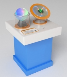 功能概述:展項由輝光盤、輝光球和展臺組成。參與者用手在盤(球)的表面輕輕觸碰或移動,可吸引或引導盤(球)內輝光的運動,探索輝光放電現象。