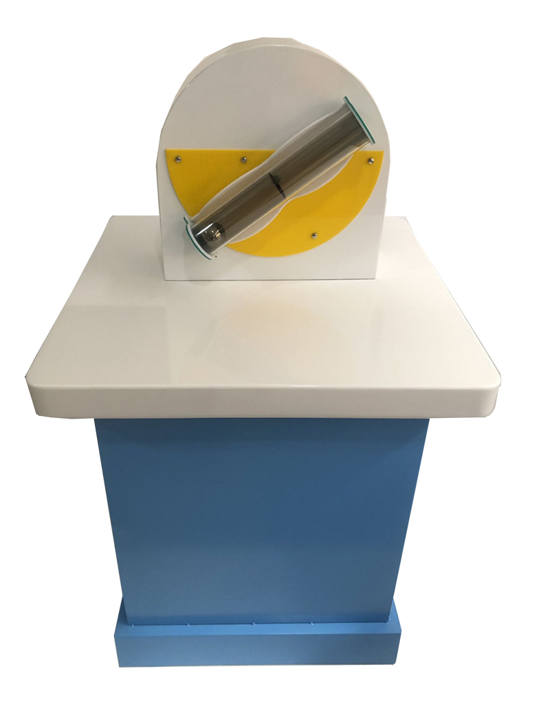 三、功能概述:本展品主體為一組由三塊全反鏡組合而成的可旋轉(zhuǎn)觀察通道。我們都知道,單塊平面鏡成像時(shí),無論鏡子如何旋轉(zhuǎn),鏡子內(nèi)的像是不跟著旋轉(zhuǎn)的。本體驗(yàn)裝置里裝有三面鏡子,并按一定角度組合,使得光線從一端必須經(jīng)過三次反射才能到達(dá)另一端,旋轉(zhuǎn)本裝置,三塊平面鏡同時(shí)轉(zhuǎn)動,站在裝置對面的另一人的頭部雖沒轉(zhuǎn)動,但三塊平面鏡對入射光三次反射的位置起了變化,造成他的鏡像或左右或上下顛倒的現(xiàn)象。