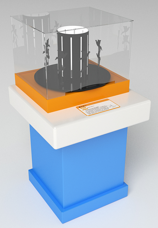 功能概述:展項(xiàng)由轉(zhuǎn)盤驅(qū)動機(jī)構(gòu)和心跳干涉圖案組合構(gòu)成,按下啟動按鈕,電機(jī)驅(qū)動光柵轉(zhuǎn)動,可看到莫爾條紋引起的視錯(cuò)覺。