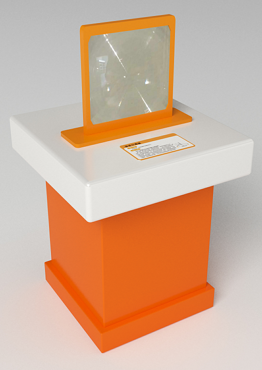 三、功能概述:展品由隱形裝置、光路展示裝置構(gòu)成。隱形裝置有五棱鏡、三棱鏡各6塊,組成一個(gè)光路折射組合,讓光線繞開中間的區(qū)域,達(dá)到隱形的目的,觀眾將測試棒插入棱鏡組中間的洞,會發(fā)現(xiàn),棒的中間那段消失了,同時(shí)光線只避開棱鏡組中間的區(qū)域,棱鏡后面的圖案同樣清晰可見;光路演示裝置由激光器、移動機(jī)構(gòu)、棱鏡組、操作手輪、傳動機(jī)構(gòu)等構(gòu)成。轉(zhuǎn)動手輪,啟動激光器,并移動激光的入射點(diǎn),可清晰看到光路的變化。