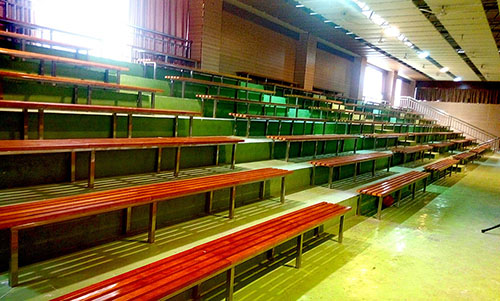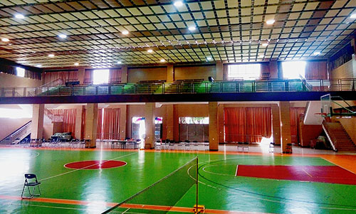 體育館內配備了專業的燈光、音響、通風設備和更衣室、洗手間等配套硬件設施。場內根據實況配置八臺小音響,兩臺大音響和四臺低音炮,充分考慮到不同用途需要不同的音響效果。因為體育館空間大,容易造成回聲,廣視通技術人員在設計時充分考慮到這點,因此墻面采用了全頻吸聲板,減少回音,使音響達到好的聽覺效果。