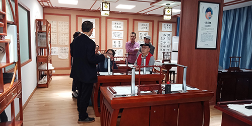 在董事長陳登貴先生的陪同下,東莞市書法家協會一行領導參觀了智慧書法教室展廳,詳細了解了公司智慧書法教室的軟、硬件研發情況,并對廣視通智慧書法教室所取得的成績給予了高度評價,同時也提出了一些建設性、針對性和可操作性建議。