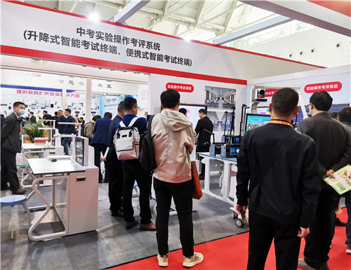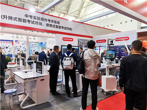 本次展會,廣視通攜AI中考實驗考場(升降式智能考試終端)、AI實驗室控制中心、可視化實訓示教儀等新產品亮相,吸引了眾多嘉賓和觀眾駐足。