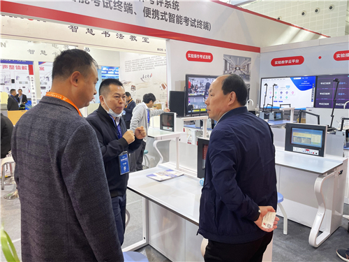 廣視通是智慧教育裝備一站式解決方案的生產商和集成商,是實驗室智能化與信息化行業領導者和學科功能教室的空間設計與集成專家。本次展會,廣視通帶來了AI中考實驗考場(便攜式智能考試終端)、智慧書法教室、AI中考實驗考場(升降式智能考試終端)AI實驗室控制中心、可視化實訓示教儀等系列產品及新產品亮相展會,吸引了眾多領導嘉賓關注和體驗。