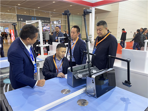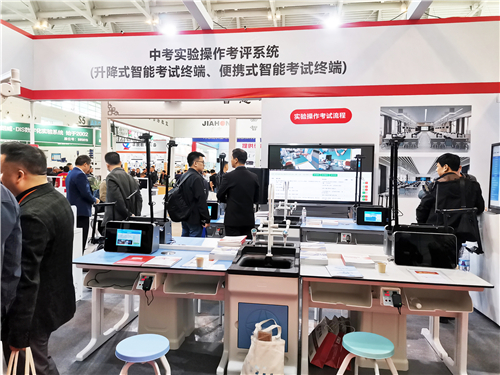 展會現場,AI中考實驗考場(便攜式智能考試終端)收納形式的靈活性、設備應用的便捷性、攝像頭采集角度的多樣性等特點優勢,獲得了參展嘉賓的一致好評。
