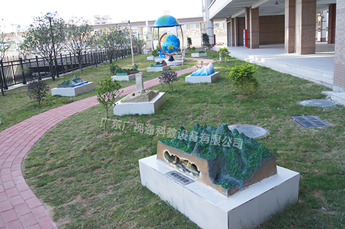 地理科普園的建設在地理學科教學中具有重要意義。其突出功能是化書為物直觀形象、造型逼真、科學性強、化繁為簡、便于理解,成為集地理教學、校園美化為一體的多功能地理科普園。同時地理科普園是理想的地理課堂輔助教學和進行地理課外活動的良好場所。是實現地理課從應試教育向素質教育轉變的途徑之一,也是進行鄉(xiāng)土地理教育的重要基礎。地理園建設是以教育部頒發(fā)的現行教育大綱為依據,同時結合地理教學的客觀實際,學校場地的實際情況而設計的。其主要內容是以地球上各種具有代表性的地貌、地質特征微縮而成的。