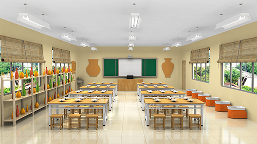 學(xué)校陶藝室擁有一整套先進(jìn)齊全的陶藝教學(xué)設(shè)備,有手轉(zhuǎn)盤、泥條機(jī)、磨釉機(jī)、煉泥機(jī)、拉坯機(jī)、陶泥、釉料、陶藝工具等用品供學(xué)生們使用。