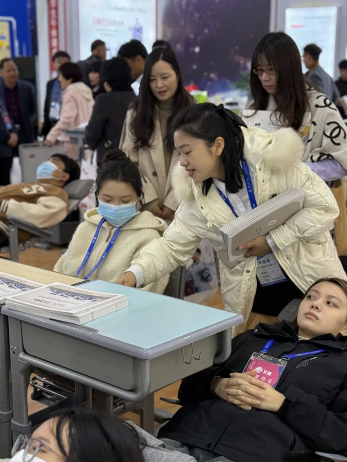 此次展會(huì),師生之友向大家展示了符合國(guó)家標(biāo)準(zhǔn)GB/T46016-2025的優(yōu)質(zhì)午休課桌椅,尤其是本次展會(huì)新品側(cè)躺式午休課桌椅受到了眾多師生朋友們的一致好評(píng),小學(xué)排距90cm,中學(xué)排距100cm就能實(shí)現(xiàn)后仰150度午休。課椅座面采用特制的PE藤制材料編織,透氣性好,還具備良好的承托彈性,久坐不易疲勞,提升睡眠質(zhì)量。工作人員以專業(yè)的技術(shù)講解以及現(xiàn)場(chǎng)功能展示,向各位參展商展示了產(chǎn)品的亮點(diǎn)。