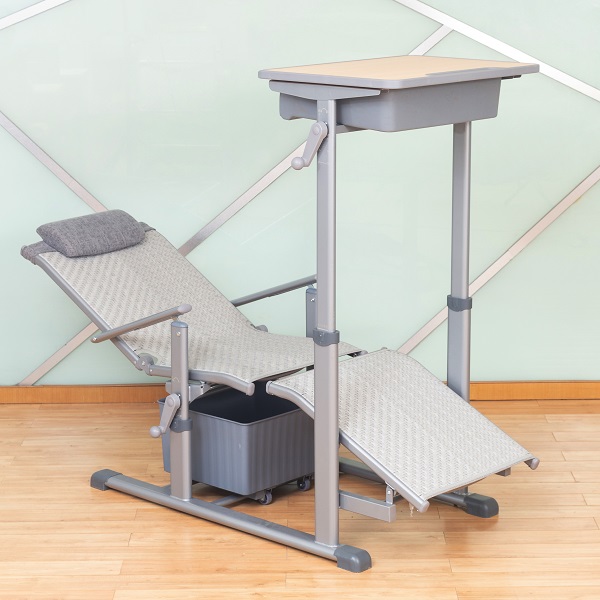 3、課斗規格:360mm*450mm*100mm±3mm,PP塑料一次成型,課桌底下前部設置藤質躺板。