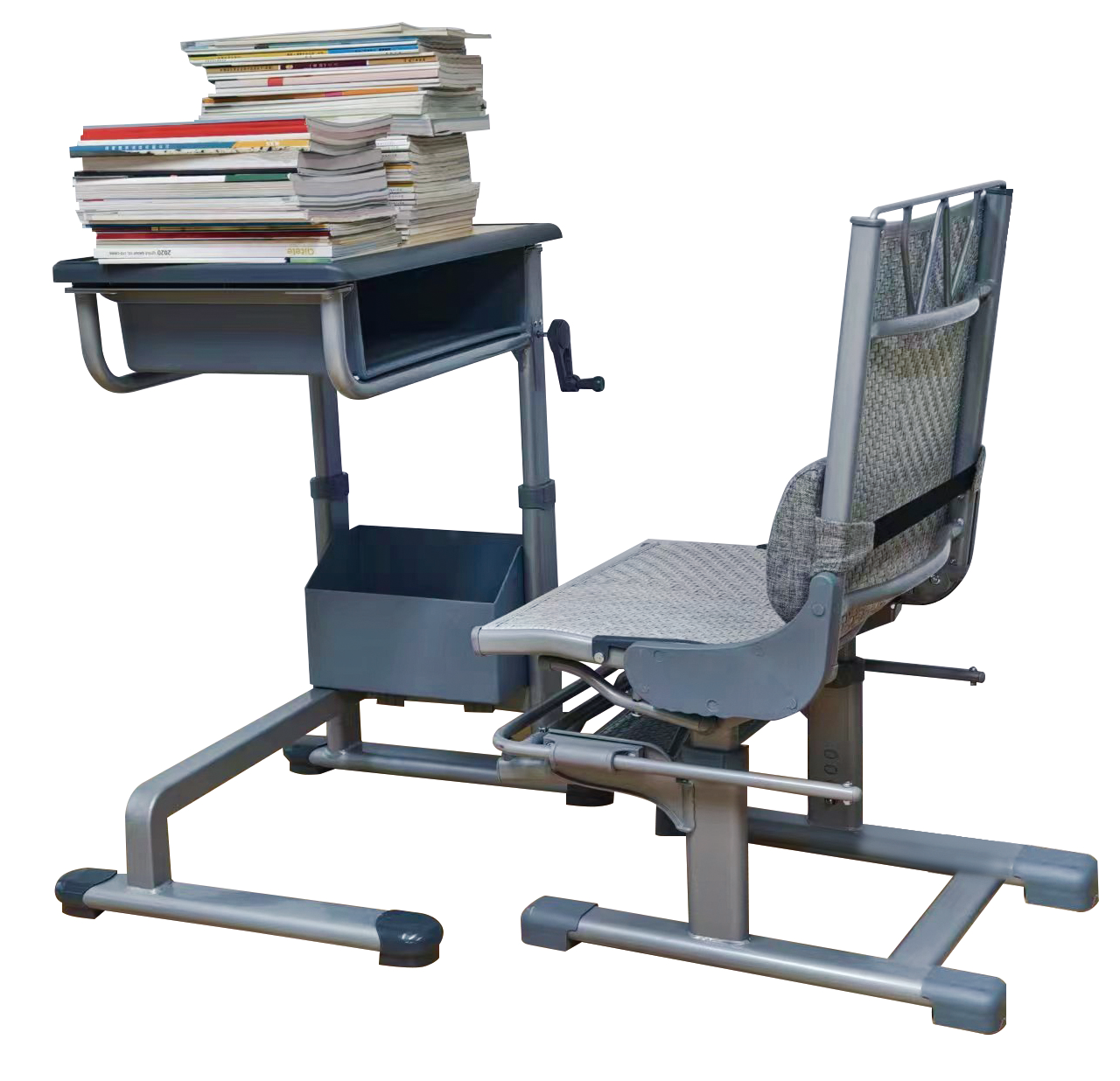 1、課桌規格:整體框架采用單側雙立柱結構,通過課桌立柱一側桌斗旁的手搖升降調節裝置,可調節桌面高度(640mm-790mm)±5mm,符合課桌椅國標5號-0號標準,適用于小學到高中群體。