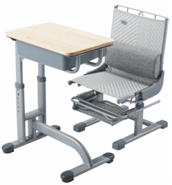 產品在研發時充分考慮到教室空間的利用率,將課椅椅腳進行延長保證穩固性,午休時將課椅向前移動,將桌面向上抬升到午休高度,最大化的利用課桌下方的可用空間和前位椅下的空間,并且讓平躺午休更加舒適安全。