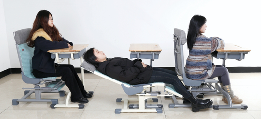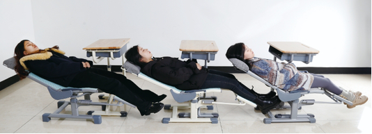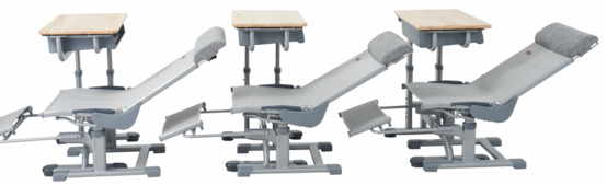 我司產品在教室內擺放時,小學生可在90公分前后間距實現150度原位舒適躺休,中學生可以在1米前后間距實現150度原位舒適午休。而且從座椅轉換成躺椅形態時,也不需要向外擴展空間,滿足多人教室和小面積教室的現實改造。