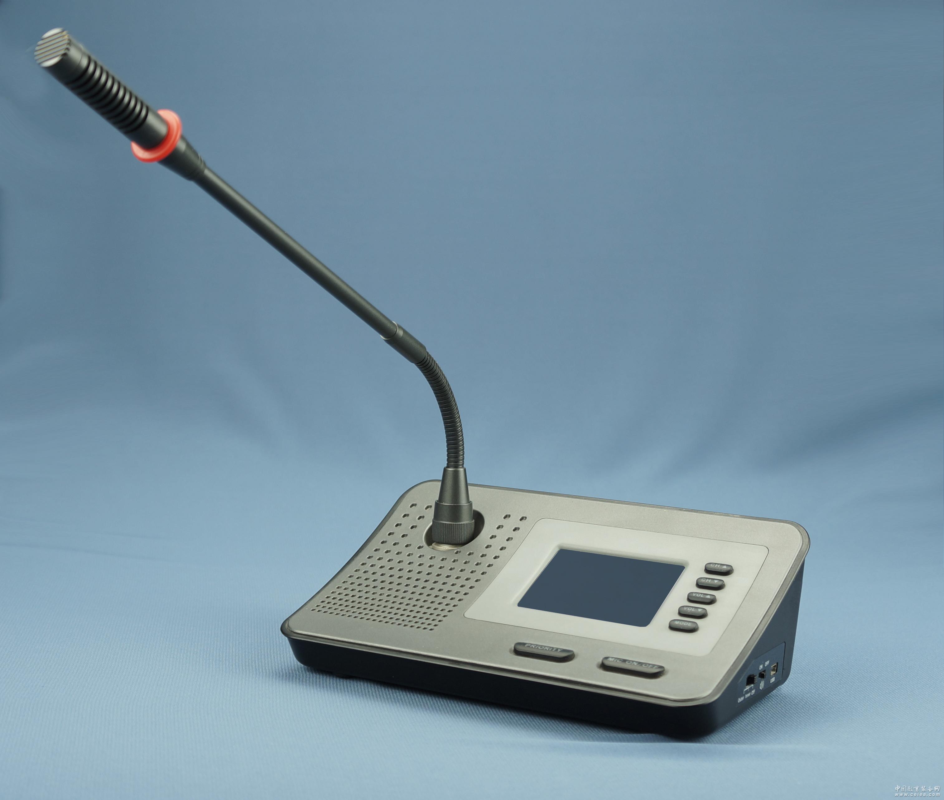工作頻率 2.4G 頻道數量 19個 主席控制功能 有 頻率響應 20Hz-20KHz 比特率 16bit 動態范圍 90dB 接收靈敏度 -90dBm 鵝頸長度 標配340mm 觸屏尺寸 2.8寸 屏幕 LCD 電子桌牌尺寸 49mm*145mm 重量 0.5KG 電源 內置3.6V鋰電源或 AAA電池 |