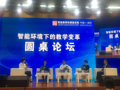 本次大會(huì)圍繞“智能環(huán)境下的教育變革”、“智能教育的目標(biāo)內(nèi)涵與發(fā)展趨勢(shì)”、“數(shù)據(jù)驅(qū)動(dòng)綜合素質(zhì)測(cè)評(píng)”等主題,以專家報(bào)告、課堂展示、學(xué)校案例展示、圓桌論壇等形式展開。