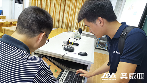 奧威亞的工匠精神,不僅體現在生產過程中的一絲不茍,也體現在售后環節的盡心盡責。為了提高巡檢效率,奧威亞巡檢服務團隊在出發前已初步了解設備現狀和使用情況,并制定檢修計劃。到達學校第一項工作,先對設備常用功能進行測試,一旦發現故障及隱患便及時記錄下來,然后逐一排查,在現場快速完成修復,并仔細地清潔每一臺設備。