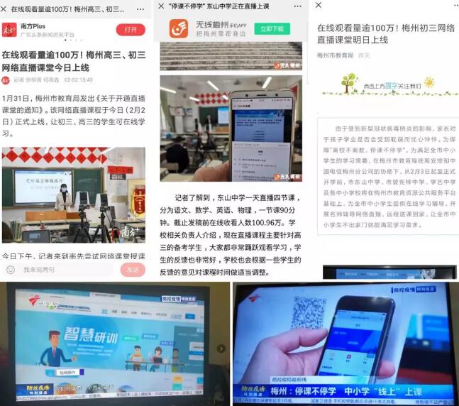 2月2日,為滿足高三學生的備考需要,廣東梅州市教育局組織開展“名師備考輔導網絡直播活動”,通過奧威亞的錄播設備及“名師直播支持服務”,向全市高三學生直播。一天內,東山中學共直播四節課,涵蓋語文、數學、英語、物理。上午2節直播課結束之前,短短4小時內觀課人次就已突破100萬,觀眾點贊達11萬。