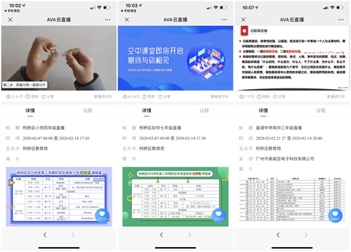自1月28日起,奧威亞面向全國教育系統推出三大免費服務助力各地“停課不停學”。服務一經推出便迅速獲得浙江省教育系統的關注,主動聯系后奧威亞及時給予響應,目前已為溫州市甌海區、紹興市上虞區以及柯橋區等各區域教育局提供強有力的服務與支持。2月10日,柯橋區首日直播觀看人次就高達700萬+。