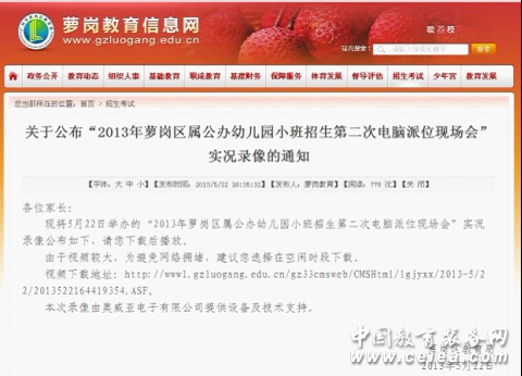 為了確保派位的公正公開,防止“暗箱操作”,增加整個派位過程的透明度,蘿崗區教育局邀請了由蘿崗區公證處、區教育局紀委、區人大代表等組成“招生工作監督小組”,來對派位全程進行現場公證。并將派位結果于當天在幼招服務平臺發布,供幼兒父(母)或其他法定監護人查詢。
