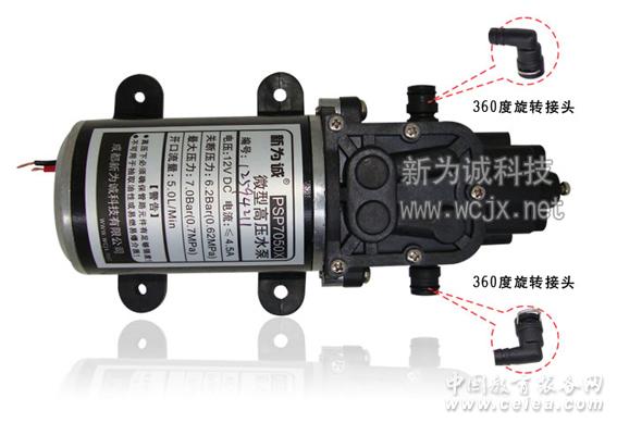 產(chǎn)品詳細(xì)介紹微型水泵,微型高壓水泵,12V直流水泵,24V直流水泵,自吸水泵,隔膜水泵 24V直流水泵 新為誠品牌--自帶泄壓、過壓雙保護開關(guān)PSP系列 型號:PSP7050X 壓力:7公斤 流量:5L/Min 電壓:直流12V(24V),可接車載電瓶 1.主要特點:體積小、重量輕(1.2kg),壓力高(最大可穩(wěn)定在7公斤工作),流量大(5L/MIN),低噪音。 2.泵自帶過壓/泄壓雙保護功能。 (過壓保護:輸出壓力超過泵的壓力保護開關(guān)閥值時,自動停機保護;直到壓力降到低于閥值后才重新啟動; 泄壓保護:大于設(shè)定壓力的多余壓力會自動被卸掉,讓新泵為穩(wěn)定工作誠在設(shè)定壓力,不會自動停機。) 3.泵體自帶外徑12mm軟管接頭,額外贈送360度旋轉(zhuǎn)寶塔接頭2個(外徑10mm),方便連接不同內(nèi)徑軟管! 4.自吸能力強,自吸高達(dá)2.5米,進出水口自帶密封圈,保證自吸及不漏水。 5.用途:性價比超高,可廣泛用于水轉(zhuǎn)移、水循環(huán)、噴霧、沖洗等用途。 6.對象:水處理、液體采樣,科研,儀器儀表,化工分析,醫(yī)療保健,醫(yī)藥衛(wèi)生,生物工程,自動控制,環(huán)保等眾多領(lǐng)域的客戶。 “新為誠”微型泵,產(chǎn)品質(zhì)保一年,并為您提供專業(yè)的售前咨詢及完善的售后服務(wù)。更多詳細(xì)參數(shù)請訪問【成都新為誠科技有限公司】網(wǎng)站: http://www.wcjx.net