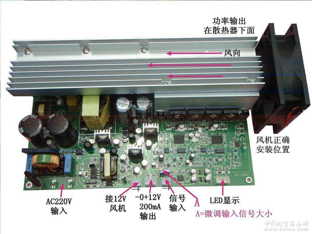 輸入、輸出接口: 工作狀態(tài)LED顯示接口 用于顯示工作、信號(hào)、自動(dòng)保護(hù)狀態(tài)指示。 12V200mA風(fēng)機(jī)電源輸出 用于外接散熱風(fēng)機(jī) + - 12V 200mA輸出 用于您或許需要配套的前級(jí)板電源. 智能風(fēng)機(jī)控制: 當(dāng)散熱器溫度上升到50度時(shí),風(fēng)機(jī)開始工作。低于50度時(shí),風(fēng)機(jī)停止工作。