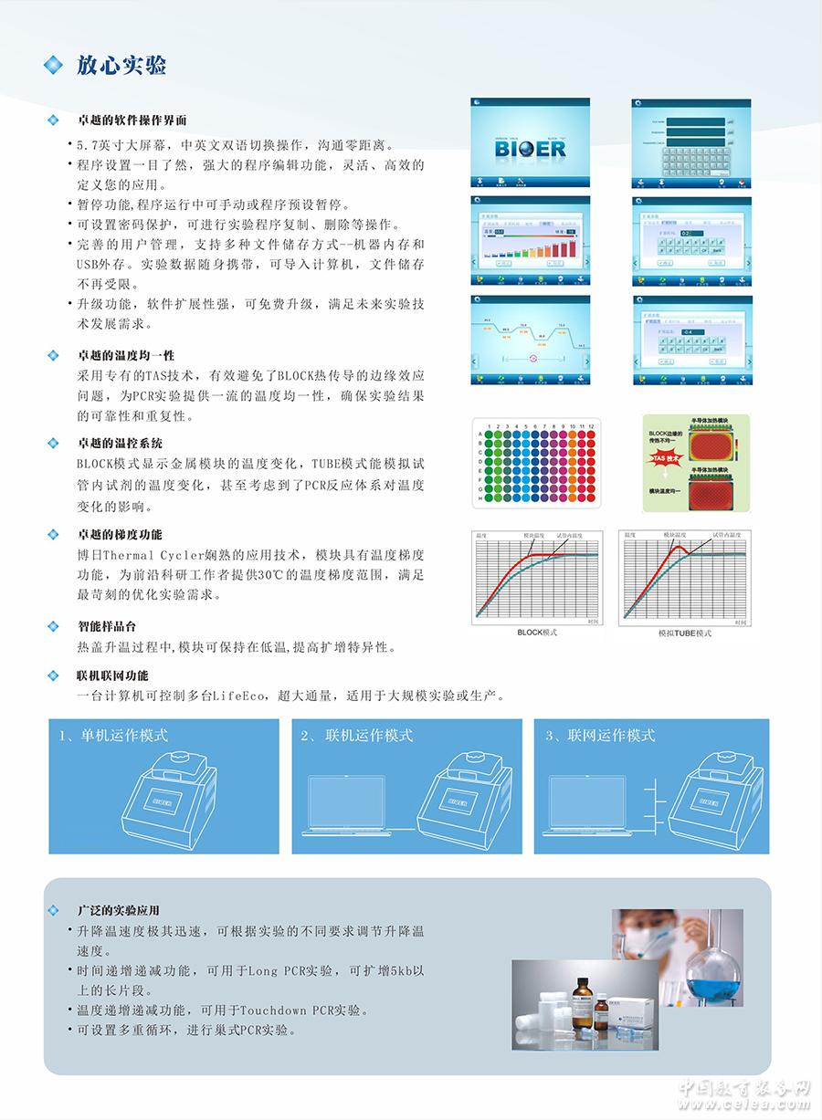 產(chǎn)品詳細介紹杭州博日基因擴增儀銷售,型號GeneTouch,基因擴增儀銷售,PCR儀銷售商,PCR儀專業(yè)供應(yīng),基因擴增儀廠家銷售,基因擴增儀廠家直銷 產(chǎn)品名稱 LifeEco LifeTouch GeneTouch 產(chǎn)品編號 BYQ6078 BYQ6072 BYQ6071 型號 TC-96/G/H(b)C TC-96/G/H(b)B TC-EA(主機) 模塊型號 —————— —————— B-96GA B3048UA B-384GA B-48DA B-4IA 樣本臺容量 96孔*0.2ml 96孔全裙板、 半裙板、 無裙板通用 12*8聯(lián)管 96孔*0.2ml 96孔全裙板、 半裙板、 無裙板通用 12*8聯(lián)管 96孔*0.2ml 96孔全裙板、 半裙板、 無裙板通用 12*8聯(lián)管 30*0.5ml 48*0.2ml 4*12聯(lián)管 384微孔板 (全裙) 每個模塊 48*0.2ml 6*8聯(lián)管 4塊載玻片 技術(shù)方案 半導體技術(shù) 液晶顯示 彩色觸屏(5.7英寸) 彩色觸屏(6.5英寸、26萬色) 溫度范圍 4℃~105℃ 最大升溫速度 ≥4℃/秒 ≥4℃/秒 ≥4℃/秒 ≥2.8℃/秒 ≥2.8℃/秒 ≥4℃/秒 ≥1.8℃/秒 最大降溫速度 ≥4℃/秒 ≥4℃/秒 ≥4℃/秒 ≥2.8℃/秒 ≥2.8℃/秒 ≥4℃/秒 ≥1.8℃/秒 溫度均一性 ≤±0.3℃ ≤±0.2℃ 溫控精度 ≤±0.1℃(55℃)≤±0.2℃(90℃以上) 溫度顯示分辨率 0.1℃ 溫控方式 BLOCKTUBE模式 變溫速度可調(diào) 0.1℃~4℃ 程序存儲數(shù) 250個文件,本機內(nèi)存250個文件+USBFLASH 最大段數(shù) 10 最大步驟數(shù) 100 最大循環(huán) 99帶嵌套2級,可做巢式PCR實驗 時間遞增/遞減 0~9分59秒可做Long PCR實驗 溫度遞增/遞減 0.1℃~.9.9℃可做Touchdown PCR實驗 自動暫停/斷電保護 有 Soak功能 有 實時運行狀態(tài)顯示 圖文顯示模式 梯度溫差范圍 30℃~105℃ 30℃~105℃ 30℃~105℃ —————— 30℃~105℃ —————— —————— 梯度溫差范圍 1℃~30℃ 1℃~30℃ 1℃~30℃ —————— 1℃~30℃ —————— —————— 熱蓋溫度 30℃~110℃ 熱蓋溫度 溫度壓力可調(diào)節(jié),適用不同品牌耗材 智能熱蓋功能 樣品臺溫度低于用戶設(shè)定值時或程序結(jié)束時,熱蓋自動關(guān)閉 U盤功能 通過U盤無限量下載程序 通訊接口 USB接口 網(wǎng)絡(luò)接口(LAN) 電壓范圍 100-240V,50~60Hz 輸出功率 600w 尺寸(長*寬*高) 335*260*270mm 345*250*270mm 368*250*285mm 凈重 8kg 10kg 10.5kg 認證 Ferrotec Pelitier / MET / CE / RoHS / PICC產(chǎn)品質(zhì)量責任險 |