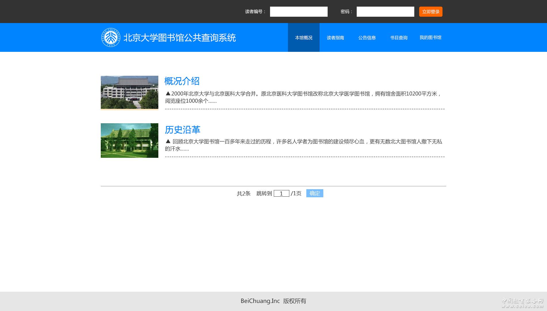 在服務器安裝本查詢系統(tǒng)后,讀者即可通過IE瀏覽器訪問查詢系統(tǒng),在查詢系統(tǒng)上可了解圖書館介紹,查看最新公告,進行目錄查詢,登入后還可瀏覽自己的借閱,借閱流水,預借等信息,還可更改自己的帳號密碼。本查詢系統(tǒng)必須結(jié)合《瑞天圖書管理系統(tǒng)旗艦版》最新版使用.