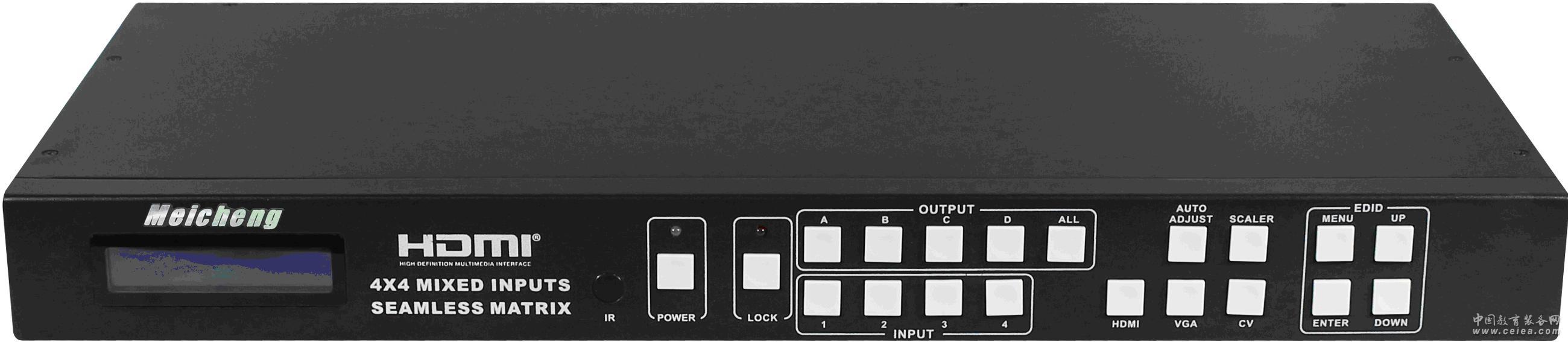 產(chǎn)品詳細(xì)介紹MX-1004VW是一款高性能電視墻拼接處理器—具畫面分割、無縫切換輸出及混合輸入4x4矩陣切換器,具4組混合訊號(hào)輸入[支持?jǐn)?shù)字和模擬影像訊號(hào)],同時(shí)4組輸出具無縫切換功能,無縫切換輸出模式分有:快速切換、淡入淡出、拉幕等16種特效。 該混合矩陣切換器采用先進(jìn)數(shù)字處理技術(shù),具影像Scaler(影像處理與轉(zhuǎn)換)后傳送到顯示器或是電視機(jī)的功能,實(shí)現(xiàn)并達(dá)到了多種格式訊號(hào)統(tǒng)一輸出、無縫切換的完美視覺效果。同時(shí)紅外線遙控矩陣功能、模擬影像訊號(hào)輸入兼具音訊嵌入功能。控制方式多樣靈活,可透過前面板按鈕控制、IR控制、RS-232控制、TCP/IP控制。