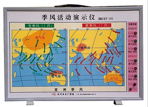 大范圍地區(qū)的盛行風(fēng)隨季節(jié)改變現(xiàn)象的風(fēng)稱(chēng)季風(fēng)。與生活在該地區(qū)的人們密切相關(guān)。所以,季風(fēng)環(huán)流是高中地理—《全球大氣環(huán)流》章節(jié)中一重要知識(shí)點(diǎn)。通過(guò)本內(nèi)容的教學(xué),應(yīng)該使學(xué)生了解和獲得“季風(fēng)的成因”、“ 東亞季風(fēng)”、“ 南亞季風(fēng)” 各自特征及相關(guān)的地理知識(shí)概念。季風(fēng)活動(dòng)演示儀是國(guó)家教育部2000年6月制定的《中學(xué)理科教學(xué)儀器配備目錄》要求中學(xué)必配的新增教學(xué)儀器。我廠按照這需求,以《中學(xué)地理教學(xué)大綱》的要求和教科書(shū)的知識(shí)結(jié)構(gòu)為產(chǎn)品設(shè)計(jì)的指導(dǎo)思想,研制了本產(chǎn)品,符合學(xué)校地理教學(xué)演示實(shí)驗(yàn)之用。