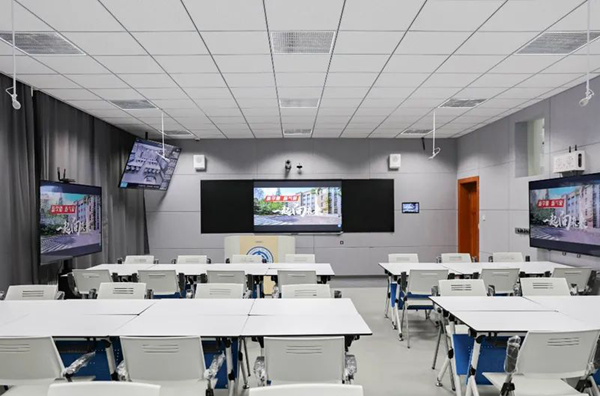 智慧教學空間還配備了精品錄播設備,錄播、直播支持觸控操作一鍵開啟,自動導播錄制,可實現實時直播,并可進行多間教室互動教學,生成的課程視頻支持自動上傳至教學資源平臺或U盤錄制,同時可實現授課板書電子化保存,滿足了教師教學復盤,學生鞏固復習和一流課程資源建設、累積的需要。
