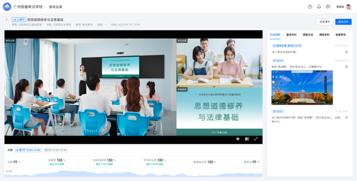 此次希沃與湖南師范大學(xué)的合作共建,為學(xué)校教學(xué)提供了簡(jiǎn)潔易用的本地錄播、跨地互動(dòng)、資源共享、教研評(píng)價(jià)等功能,幫助其實(shí)現(xiàn)優(yōu)質(zhì)教育資源的普及應(yīng)用,輔助教師進(jìn)行教學(xué)反思及專業(yè)化成長(zhǎng)。尤其在本科教育質(zhì)量評(píng)估層面,相關(guān)評(píng)審教師可借助方案,擺脫空間限制,隨時(shí)隨地進(jìn)行督導(dǎo)巡課,且上課時(shí)間、考勤情況、互動(dòng)次數(shù)均能在線直觀呈現(xiàn),無(wú)需觀看課堂全過(guò)程,即可了解課堂主要信息。