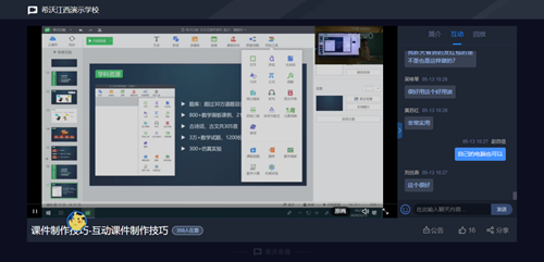 5月12日-5月14日為培訓(xùn)的第一階段,自愿報(bào)名參加培訓(xùn)的老師人數(shù)高達(dá)1000人。培訓(xùn)內(nèi)容根據(jù)當(dāng)前開展線上教育情況和提升課堂教學(xué)質(zhì)量兩方面實(shí)際進(jìn)行了設(shè)計(jì),授課教師圍繞交互式多媒體設(shè)備互動課件制作基礎(chǔ)、資源素材獲取、互動課件制作技巧、課件排版、班級管理及微課錄制六個(gè)板塊展開。
