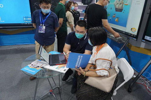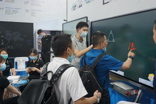 在希沃展廳內,全面展示了“互動式教培場景解決方案”,成為展會的一大亮點。該解決方案涵蓋交互智能平板、智慧黑板、希沃云屏、液晶手寫板、無線展臺、有線展臺、答題反饋器、耳戴式麥克風、便捷式音響等硬件產品;立知校長、希沃白板、班級優化大師等教學軟件;以及立知課堂這一高效便捷的互動直播教學平臺,和立知校長這一教培機構專屬運營管理平臺。從軟件到硬件,“互動式教培場景解決方案”將完美解決傳統教培機構的痛點,通過信息化手段全面提升機構辦學實力。