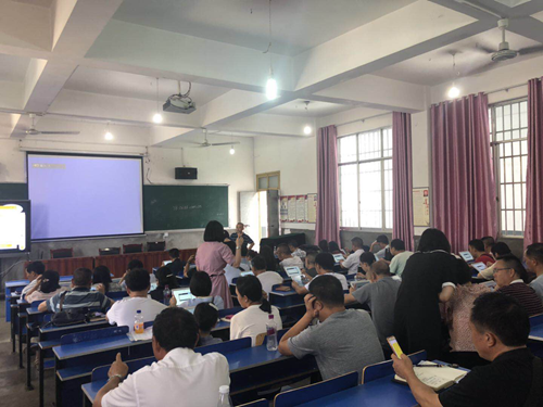 當天天氣很悶熱,但絲毫沒有影響老師們學習的積極性和熱情,很多老師早早就到了活動現場,在講師的指導下積極配合,完成了聯網登錄操作,培訓中講師向老師們拋出問題:“您認為平板教學有什么價值”,老師們紛紛踴躍發表自己的觀點;緊接著又跟老師們分享了“基于希沃易課堂的基礎教學模式”,深入淺出地講解同時,使用希沃易課堂跟老師們進行現場互動,老師們將自己代入學生的角色,認真使用平板答題。在親手操作中切實感受到了智慧課堂的魅力,碰撞出了思維的火花。
