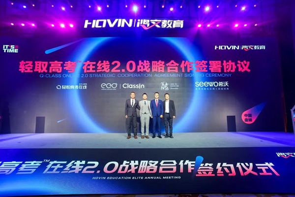 2021年3月1日,2020-2021鴻文教育集團精英年會在盤錦生態酒店舉行,希沃應邀出席。會上,鴻文教育發布了輕取高考™在線2.0全新戰略規劃,并同包括希沃在內的合作伙伴達成戰略合作。