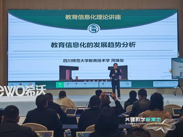 教育是立國(guó)之本、強(qiáng)國(guó)之基,“如何應(yīng)對(duì)新時(shí)代演變帶來(lái)的改革”是希沃一直以來(lái)都在思考的問(wèn)題。因此,希沃特邀四川師范大學(xué)教育技術(shù)學(xué)碩士導(dǎo)師周雄俊教授,為在場(chǎng)的渠道合作伙伴進(jìn)行了《教育信息化發(fā)展形式分析》的分享講座,為大家明確了教育領(lǐng)域發(fā)展的新方向。