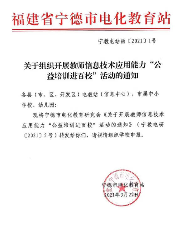 百年大計,教育為本,教育大計,教師為本。為積極響應國家《教育信息化2.0行動計劃》中的“信息素養全面提升行動,大力提升教師信息素養”的教育需求,為此,寧德市建設一支優秀的教師隊伍,推動區域教育信息化發展。2021年4月—6月,希沃應福建省寧德市教育局邀請,開展了為期三個月的信息技術應用能力“希沃公益培訓進百校”活動。