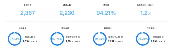 本次線上培訓(xùn)自8月23日開展以來,包含7天的線上研修學(xué)習(xí),8天的交互式課件大作業(yè),參訓(xùn)學(xué)校涵蓋37所,參訓(xùn)老師達(dá)2367人,其中2230位老師通過該培訓(xùn),綜合結(jié)業(yè)率達(dá)到94.21%。此次線上培訓(xùn)讓教師們了解并掌握課件制作的能力,利用信息化工具制作生成互動式課件進(jìn)行互動性教學(xué)。且達(dá)到了培訓(xùn)過程可視化、結(jié)果可量化的預(yù)定目標(biāo)。