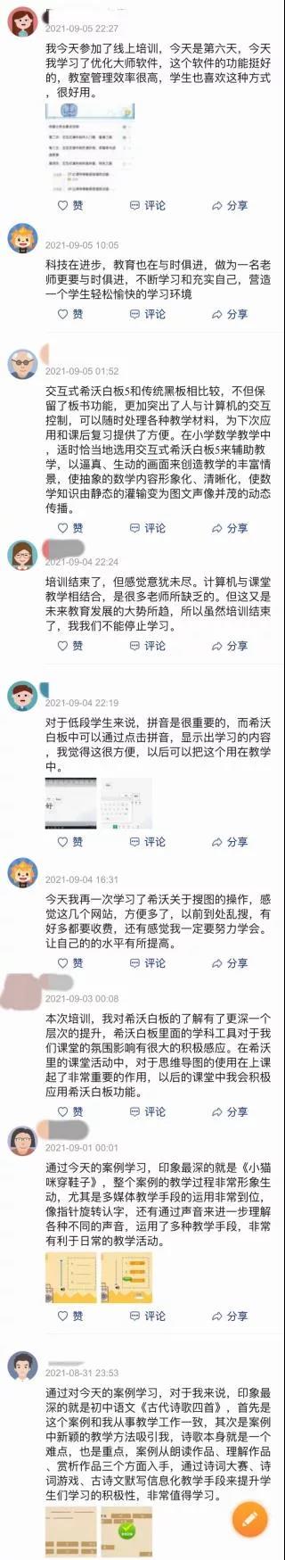 此次線上培訓(xùn)活動開展是溫宿縣教育局與希沃的攜力合作,利用希沃相關(guān)平臺組織線上研修。通過這段時間的培訓(xùn),溫宿縣教師群體樂學(xué)、好學(xué)的態(tài)度得到充分體現(xiàn),更進(jìn)一步提升了老師們在教學(xué)中應(yīng)用信息化工具的水平。相信教師們在之后的教學(xué)中持續(xù)將教學(xué)軟件與日常教學(xué)相融合,真正發(fā)揮出信息化教學(xué)軟件的作用。
