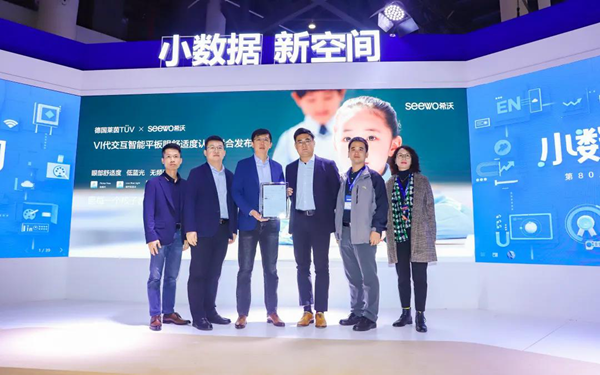 在嘉賓和觀眾們熱烈的掌聲中,希沃新一代交互智能平板獲得德國萊茵TüV頒發(fā)的認(rèn)證證書。