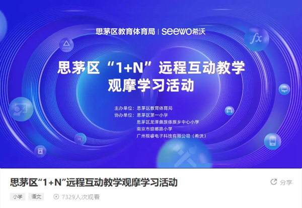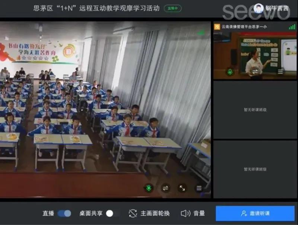 本次觀摩學(xué)習(xí)活動(dòng)主要以“希沃公益行-千里共課堂計(jì)劃”為背景,設(shè)置了建設(shè)規(guī)劃、互動(dòng)教學(xué)觀摩、總結(jié)展望等活動(dòng)版塊,依托希沃“1+N互動(dòng)課堂”信息教育技術(shù)系統(tǒng),讓來(lái)自思茅區(qū)第一小學(xué)的師生與龍?zhí)缎W(xué)的師生能通過(guò)網(wǎng)絡(luò)“共聚一堂”完成三堂遠(yuǎn)程同步觀摩課。同時(shí),此次活動(dòng)還邀請(qǐng)到了南京市瑯琊路小學(xué)一同交流學(xué)習(xí),真正推進(jìn)教育幫扶的進(jìn)度。為確保“1+N互動(dòng)課堂”推進(jìn)的統(tǒng)籌性、高效性,在前期已對(duì)學(xué)校教研教務(wù)、電教老師等進(jìn)行了統(tǒng)一性、系統(tǒng)性部署與業(yè)務(wù)培訓(xùn)。