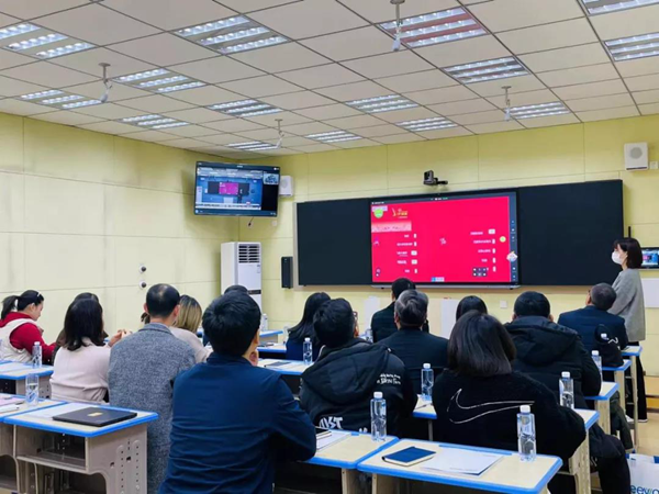 隨后,李老師又將信息技術與學科教學進行充分融合,并通過以“學生為中心”開展項目式教學的方式,讓主課堂和聽課堂的老師積極參與課堂。而這一做法,得到了現場教師、領導的充分肯定。