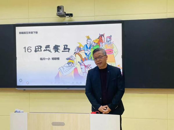 在會議結束前,來自臨川區第一小學的楊連根老師還帶來了一節無生模擬展示課,課題的名稱是《田忌賽馬》。