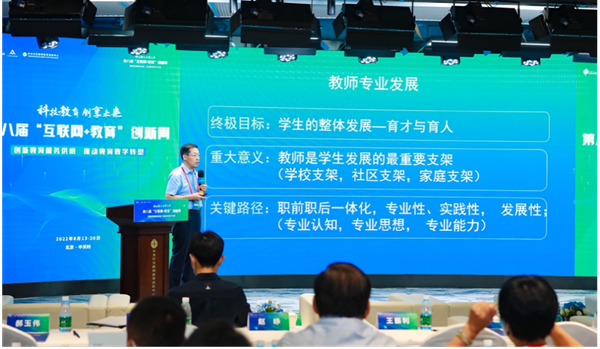 “教育數(shù)字化背景下,教師專業(yè)發(fā)展更依賴數(shù)字化應(yīng)用和工具,為教師提供支持教學(xué)、教研、學(xué)生評價(jià)、資源建設(shè)和自身成長需要且易用、體系化的硬件工具和應(yīng)用系統(tǒng),將有力推動(dòng)教師隊(duì)伍的整體質(zhì)量向前一步。”魏振水在主題演講中提出。