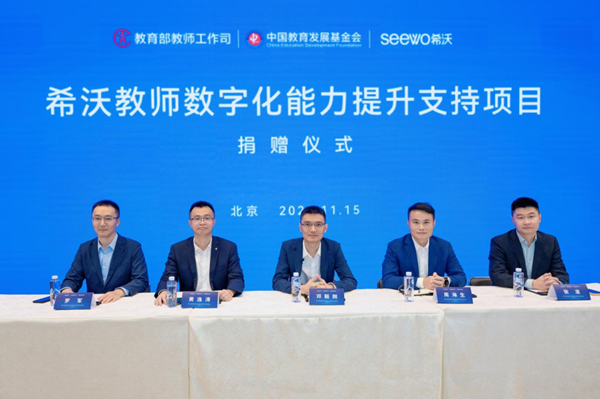 數字引領未來,強師成就教育。11月15日,希沃教師數字化能力提升支持項目捐贈儀式在京舉行。教育部黨組成員、副部長鄭富芝、教育部教師工作司司長任友群、中國教育發展基金會秘書長王建光、廣州視睿電子科技有限公司(希沃)董事長鄧毅剛等出席儀式。
