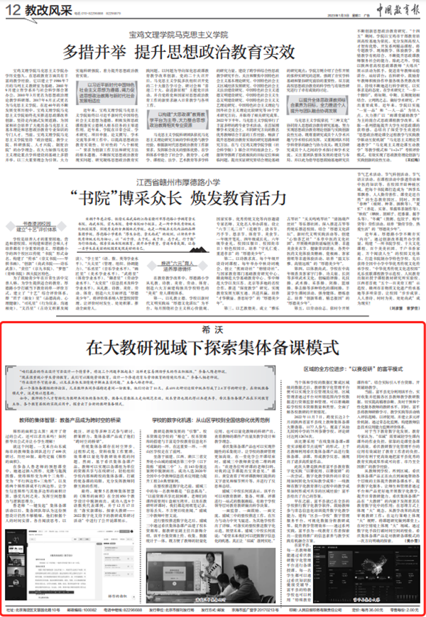2023年1月3日,《中國教育報》第12版發表《希沃在大教研視域下探索集體備課模式》的文章中報道,希沃集體備課產品在不同教育主體、各個教育層級的實踐應用中,探索出了全新的教研集備模式。以下為原文: