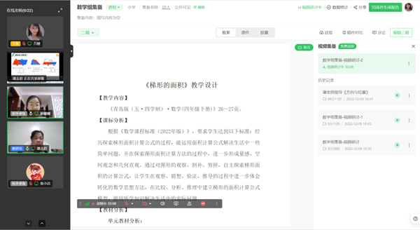 最終,凝聚5位教師集體智慧的《梯形的面積》在全國850個教學設計中脫穎而出,成功入選9個語數英代表課例,并于12月17日在“落實新課標,探索大教研——2022數字化支持下的教研成果研討活動”中進行了公開說課展示。