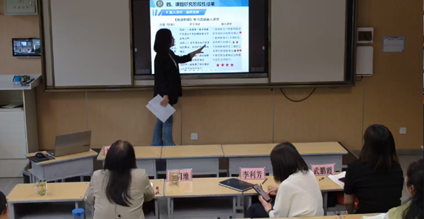 孝義市振興東街郭世玲校長根據(jù)學校研究成果,做了關(guān)于《著眼未來,立足課堂。實施教學評一體化,推動學校品質(zhì)提升》的分享,指出教學評一體化的課堂首先要確定學習目標、評價先行,用結(jié)構(gòu)化的思維進行任務(wù)分解和活動的設(shè)計,并在重難點部分嵌入評價,學生在這種學習支架內(nèi)遷移運用形成可視化的成果。