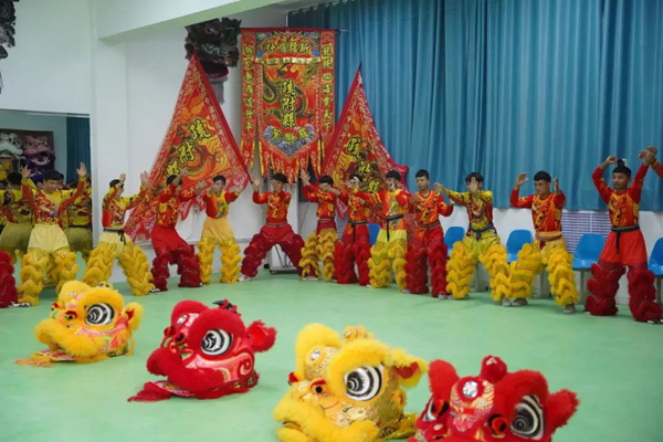 兩校孩子共上一堂課,學(xué)習(xí)醒獅動(dòng)作