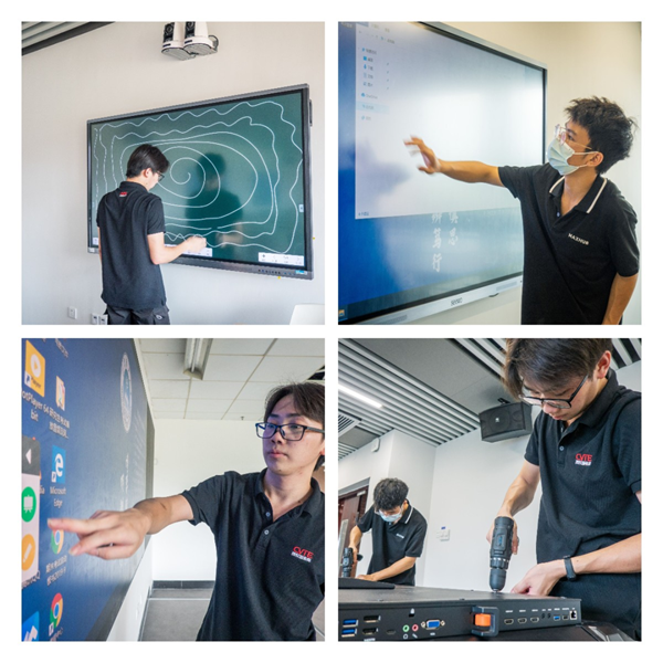 一聲令下,從西域梨城庫爾勒,到極東雪城牡丹江,北至黑河,南及三亞,希沃分布在全國各地的技術(shù)支持小分隊(duì)整裝待發(fā),背上工具包,奔赴百城千校,為上萬臺(tái)設(shè)備進(jìn)行檢修保養(yǎng)工作。